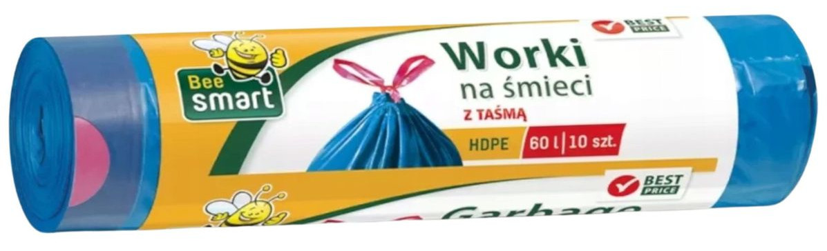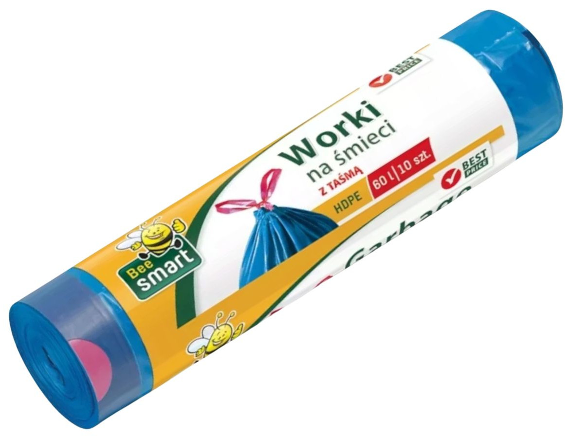 Bee Smart Worki na Odpady do Śmieci 60L HDPE z Taśmą Mocne Zawiązywane x 10