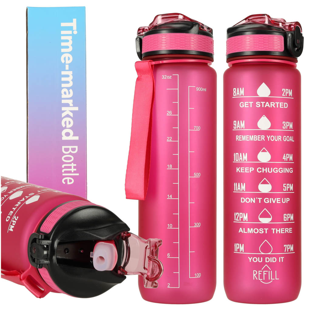 ☑️Bidon wyposażony jest w miarkę z motywacyjnymi hasłami, inspirującymi do regularnego spożywania wody w ciągu dnia. Dzięki temu wiesz ile trzeba wypić płynu, aby wspomóc swój organizm.
