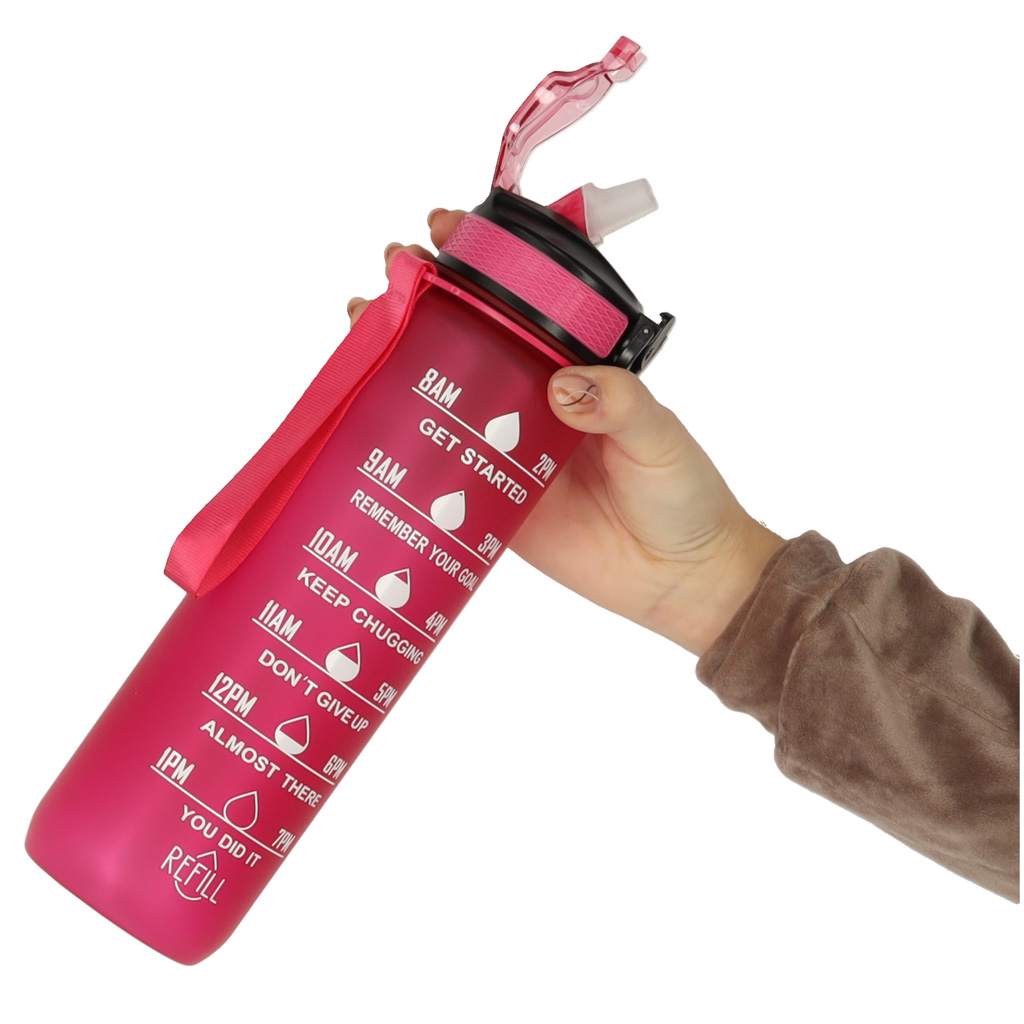 Bidon ze Słomką Uchwytem i Miarką Motywacyjną Sportowy Na Siłownię Do Szkoły Pracy