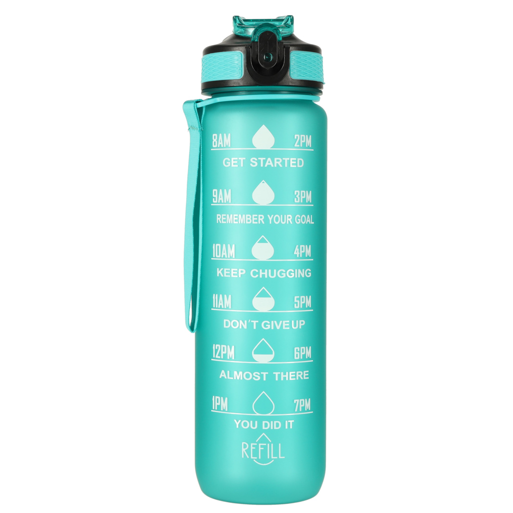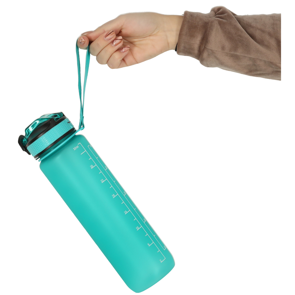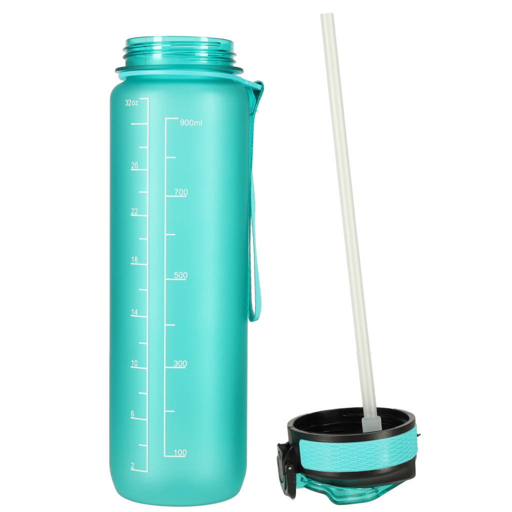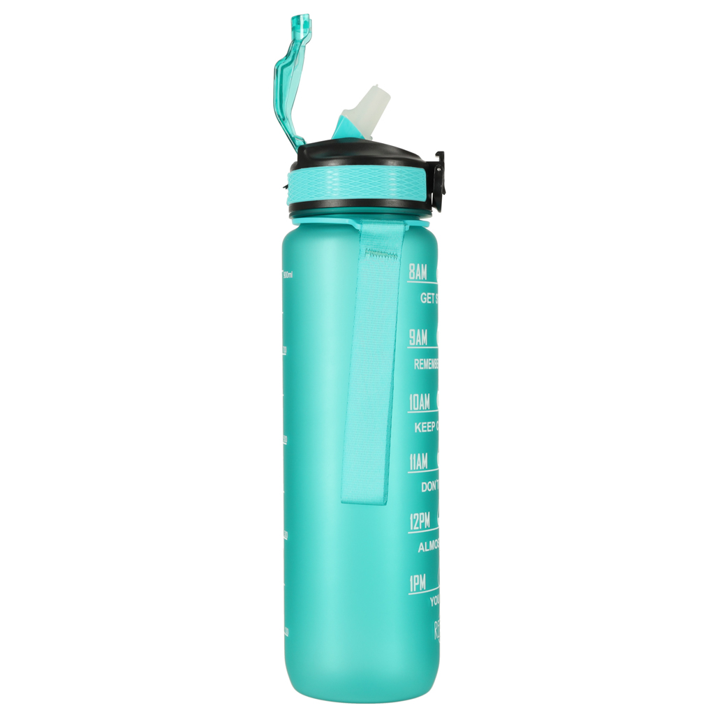Butelka tritanowa na wodę bidon ze słomką uchwytem miarką motywacyjną na siłownię 1L zielona
