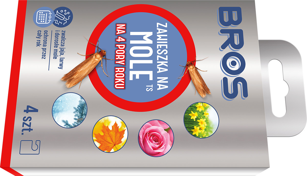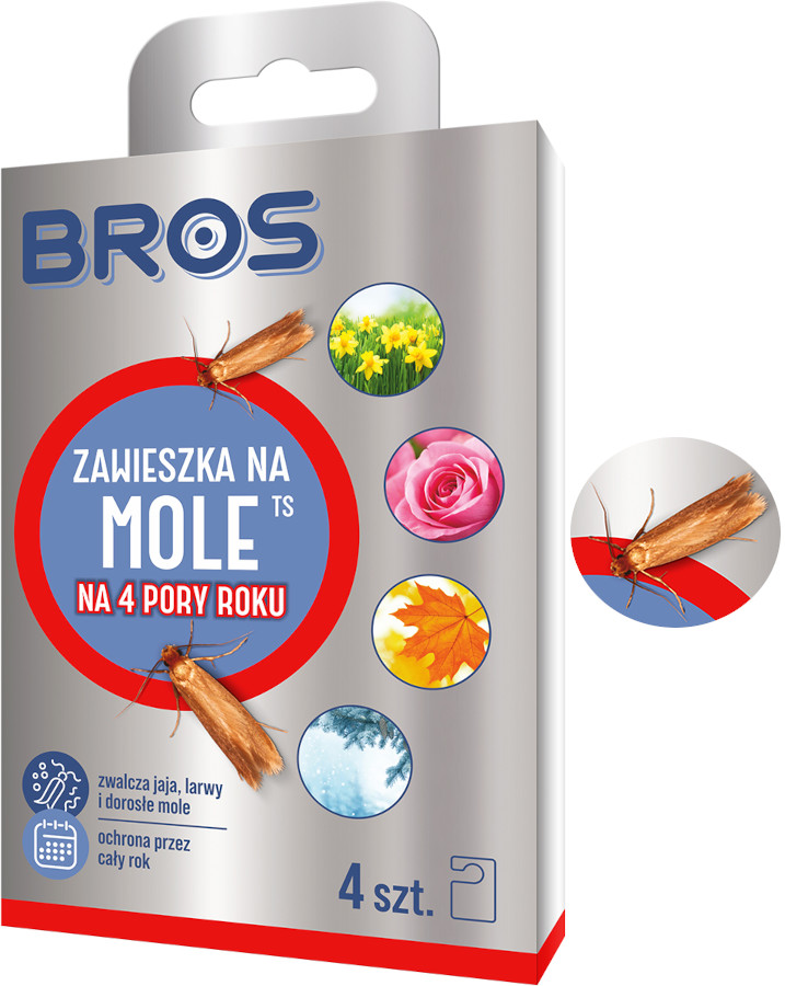✅ Zawieszka na mole "4 pory roku" to zestaw czterech wyjątkowych zawieszek, które skutecznie eliminują mole odzieżowe na wszystkich etapach ich rozwoju: od jaj, przez larwy, aż po dorosłe osobniki.