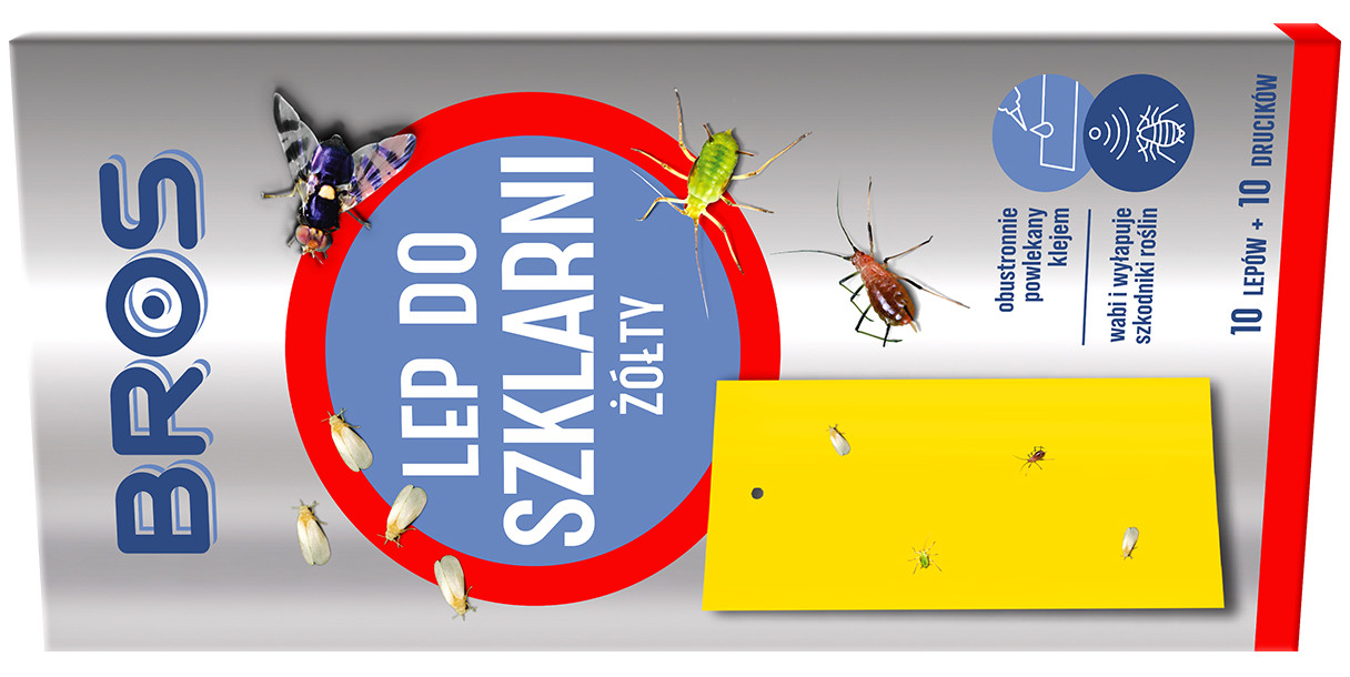 ✅ Żółty lep do szklarni BROS to niezawodne rozwiązanie do wyłapywania mszyc, mączlików szklarniowych, nasionnicy trześniówki i wielu innych szkodników.