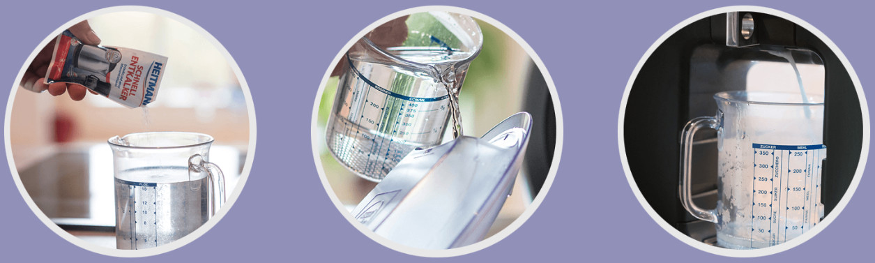 ➡️ Wlać roztwór do pojemnika na wodę urządzenia.