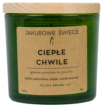 JAKUBOWE ŚWIECE Ciepłe Chwile Zapachowa Świeca Sojowa z Naturalnymi Olejkami Ręcznie Robiona 180g z Pokrywką
