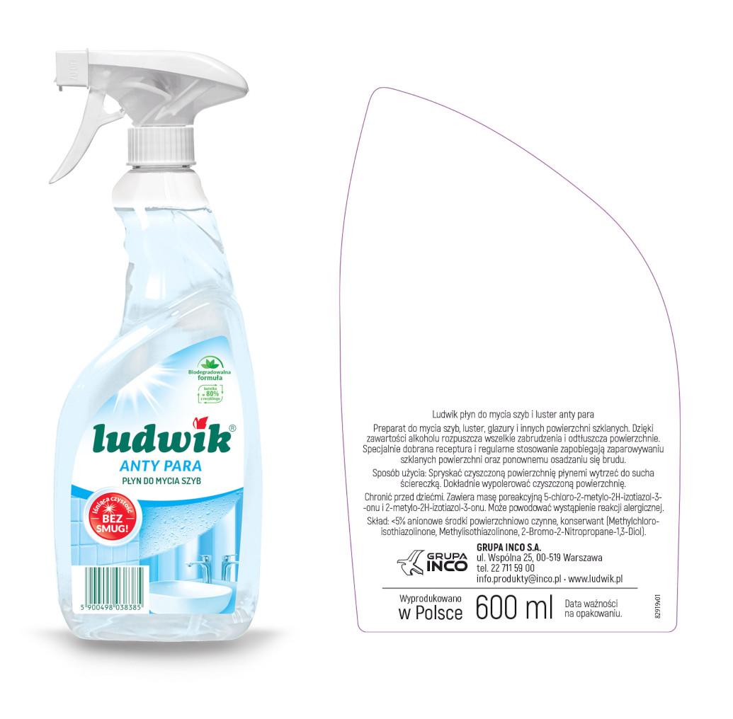 Ludwik Anty Para Płyn do Mycia Szyb Luster Blatu Bez Smug i Zacieków 600 ml