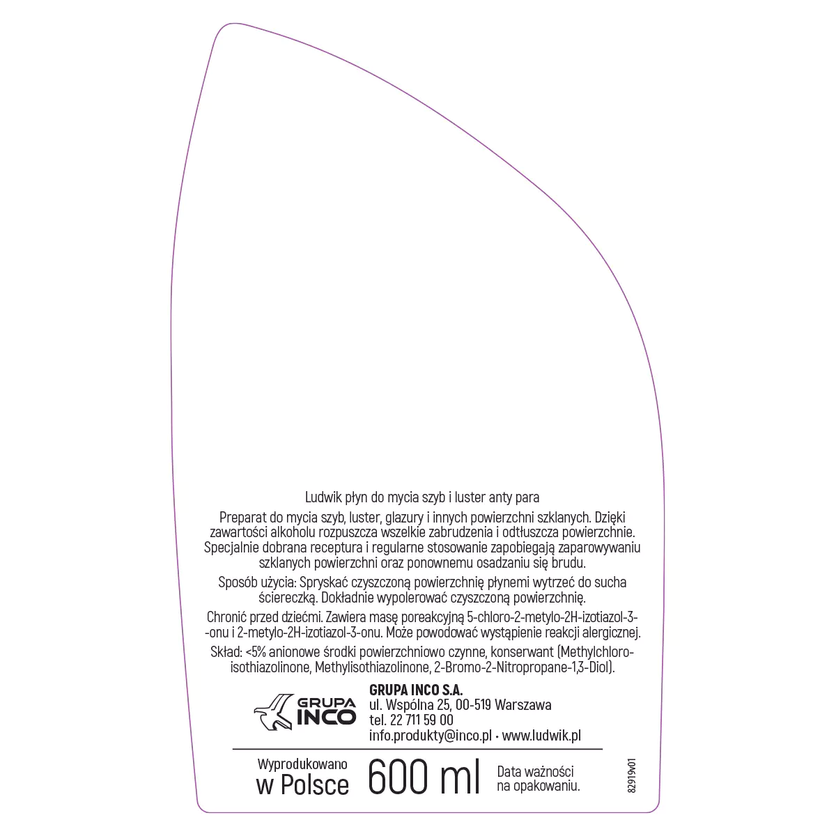 Ludwik Anty Para Płyn do Mycia Szyb 600ML - Bez Smug i Zacieków