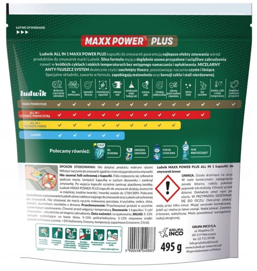 Ludwik MAXX POWER PLUS ALL IN1 Kapsułki do Zmywarki 30 szt Biodegradowalne