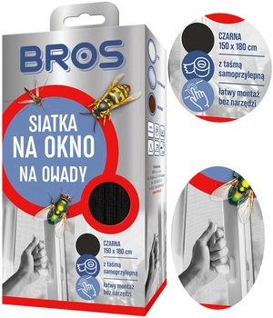 BROS Siatka Ochronna na Okno Przeciw Owadom Samoprzylepna 150x180cm Czarna